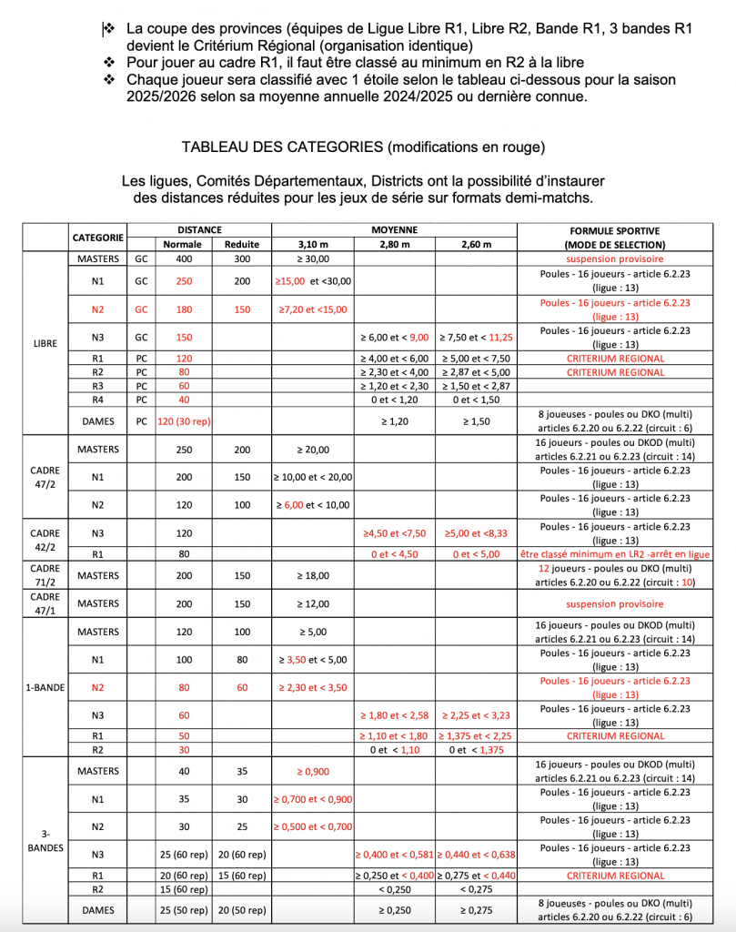 Réforme des Catégories (Distance de Jeu) Août 2025